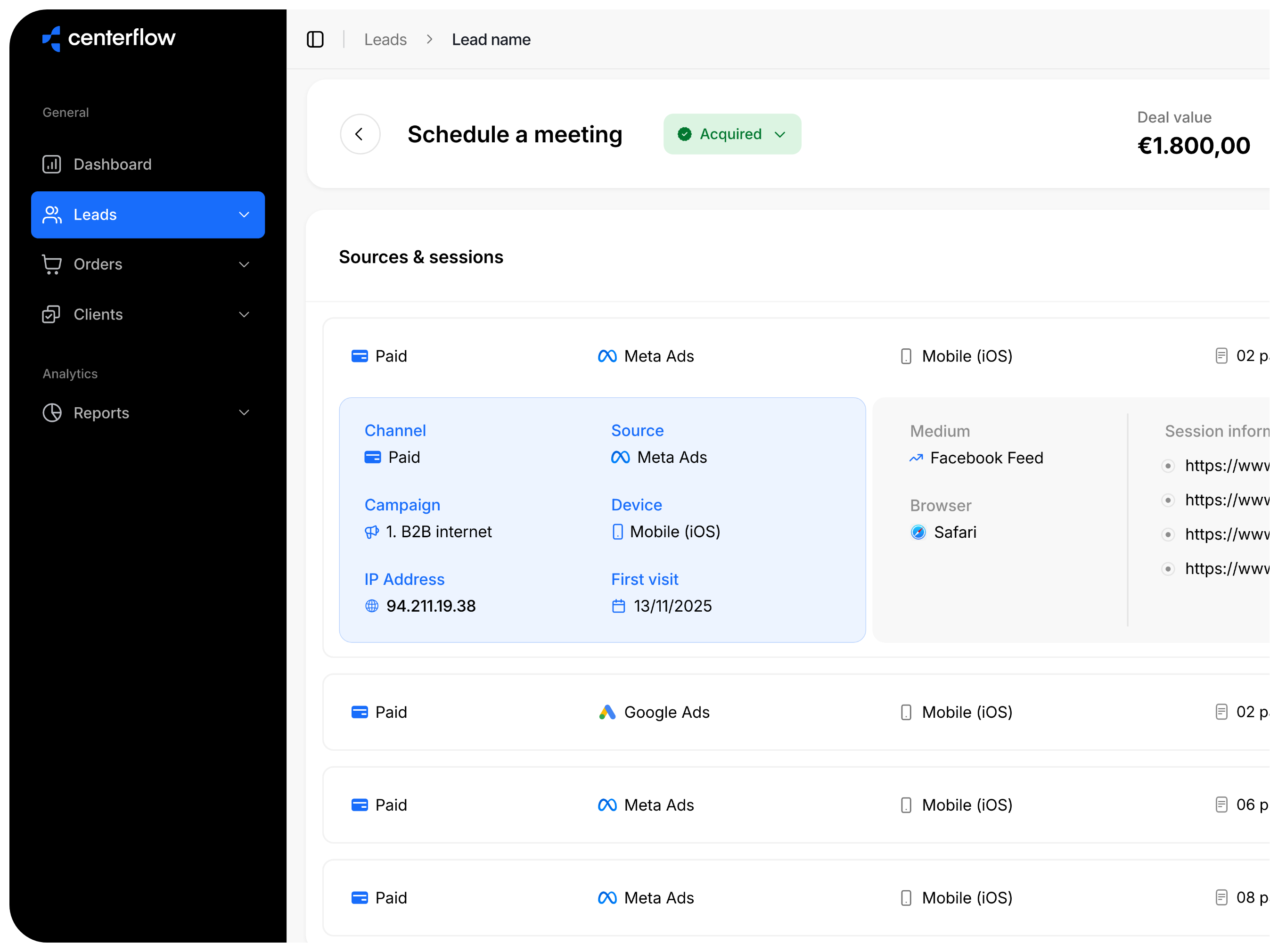Centerflow connects visits across sessions and devices into one journey where possible. This means you see the full path a customer takes before converting, instead of fragmented sessions that hide the real impact of marketing.